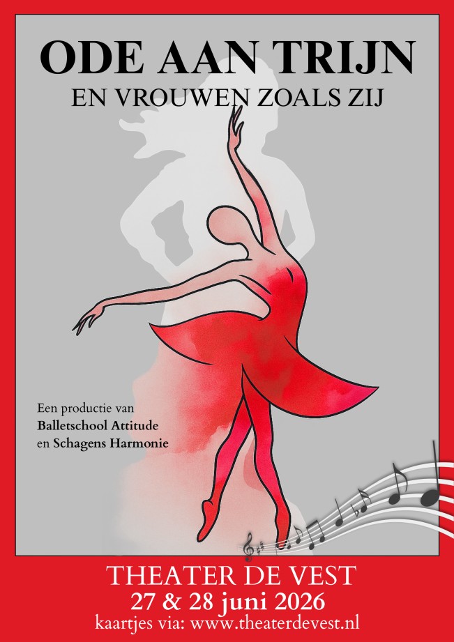 Ballet: Ode aan Trijn, en vrouwen zoals zij Kom kijken en luisteren naar Balletschool Attitude en Schagens Harmonie op 27 en 28 juni 2026 in Theater de Vest. Na de succesvolle voorstelling
